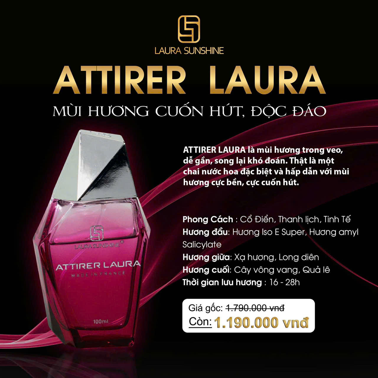 Nước Hoa Nữ No.08 ATTIRER LAURA Nhật Kim Anh 100ml là mùi hương trong veo, dễ gần, song lại khó đoán. Thật là một chai nước hoa đặc biệt và hấp dẫn với mùi hương cực bền, cực cuốn hút.